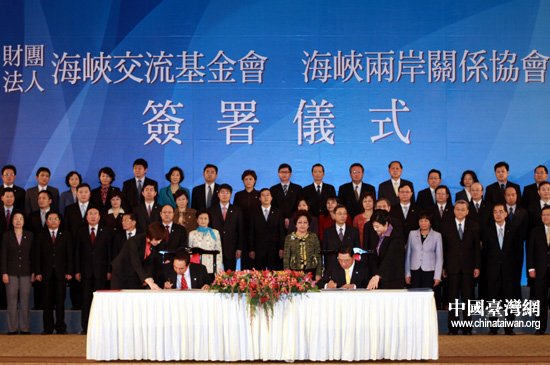 中國臺灣網12月21日臺北消息 兩岸兩會領導人第六次會談21日在臺北舉行。經過一個上午的會談,當日下午2點30分,海協會會長陳云林和海基會董事長江丙坤正式簽署《海峽兩岸醫藥衛生合作協議》。