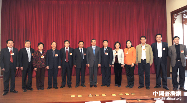 3月8日上午,中共中央臺辦、國務院臺辦主任王毅應邀出席了十一屆全國人大四次會議臺灣代表團全體會議,并與代表們合影。(中國臺灣網 王偉 攝)