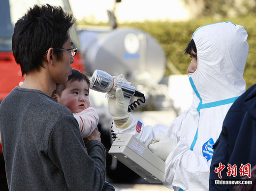 日本核泄漏危機13日傳出進一步擴大的消息。日本原子能安全保安院13日稱,福島第一核電站目前面臨新的問題,該電站第三反應堆緊急冷卻系統失靈,可能發生爆炸,急需采取冷卻措施。圖為日本福島縣郡山民眾接受輻射水平檢測。