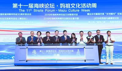 兩岸嘉賓共同為媽祖文化活動周推桿啟幕。 高亞成 攝