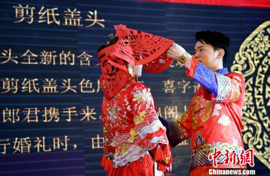 圖為“同名村·婚同俗”主場(chǎng)聯(lián)誼活動(dòng)上閩南婚俗表演。 張斌 攝