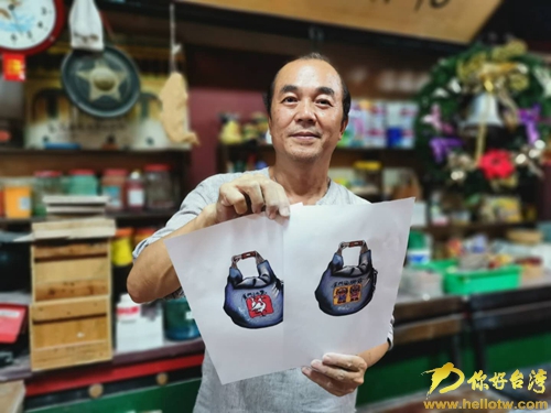 金門民間藝術家王明宗設計的環保袋《廈金同心圓》,用風獅爺代表金門,小白鷺代表廈門,象征廈金兩地為海洋環保齊心協力。