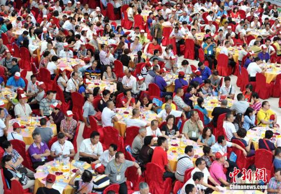 6月15日,作為海峽論壇的子活動(dòng),以“兩岸一家親,共同家園夢(mèng)”為活動(dòng)主題的“海峽兩岸村里長(zhǎng)交流會(huì)”在福建平潭舉行,來(lái)自臺(tái)灣500名和平潭200名鄉(xiāng)鎮(zhèn)長(zhǎng)、村里長(zhǎng)和村委會(huì)主任參加,活動(dòng)舉行了兩岸同名村錦旗交換儀式、兩岸姓氏族譜對(duì)接儀式、兩岸村里長(zhǎng)才藝表演等環(huán)節(jié)。中新社發(fā) 張斌 攝