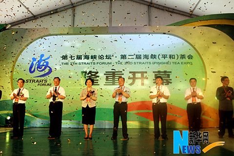6月15日福建省人大常委會副主任劉群英(左三)宣布“第七屆海峽論壇·第二屆海峽(平和)茶會”開幕