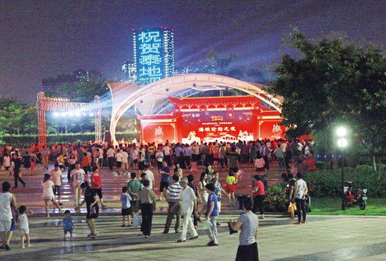 廈門網訊 據海滄消息報報道(記者 張韌 通訊員 孫悅)12日晚,“海峽論壇之夜”文藝匯演開始在海滄市民廣場精彩上演,海峽兩岸同根同源的文化藝術表演贏得市民陣陣掌聲,演出將持續至今晚。
