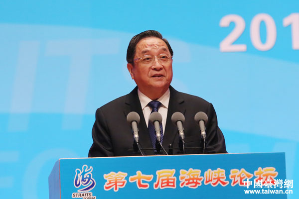 中國臺灣網6月14日訊(記者 陳佳慧) 第七屆海峽論壇大會14日在廈門海峽會議中心舉行。中共中央政治局常委、全國政協主席俞正聲出席論壇大會并致辭。