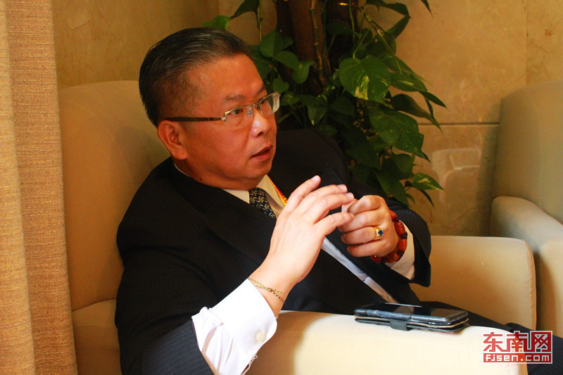 兩岸和平小天使活動創(chuàng)始人、中華企劃人協(xié)會理事長翁林澄接受記者采訪
