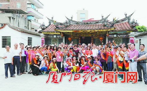 臺(tái)胞到烏涂社區(qū)家廟參觀合影。(記者張奇輝攝)