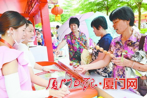 廈門網-廈門日報訊(文/記者 楊繼祥 林岑 圖/記者 黃曉珍)兩岸特色廟會,歷屆都是海峽論壇的“重頭戲”,也是最具人氣的活動之一。昨日,兩岸特色廟會在海滄市民廣場鳴鑼開市,首日即迎來市民和游客15萬人次。本屆廟會共設攤位210個,其中170個來自臺灣,覆蓋臺灣21個縣市知名美食,規模之大超越往屆。