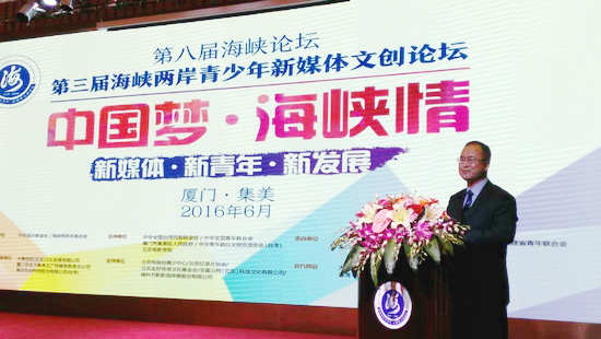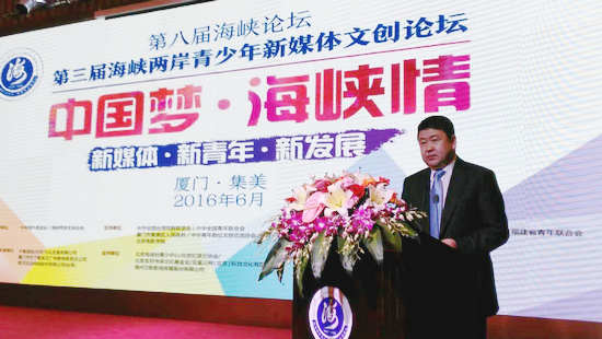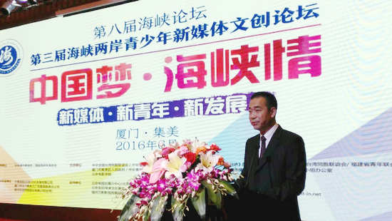 第三屆海峽兩岸青少年新媒體文創論壇于6月12日下午在廈門集美區京閩北海灣酒店拉開帷幕。該論壇是第八屆海峽論壇的重要項目,由中華海外聯誼會、海峽兩岸關系協會指導,由中華全國臺灣同胞聯誼會、中華全國青年聯合會、廈門市集美區人民政府、臺灣中華青年數位文創交流協會、北京電影學院主辦,臺聲雜志社、中國青年網、福建省臺聯、福建省青聯、廈門市集美區文化改革發展工作領導小組辦公室承辦,由中青創投(北京)文化發展有限公司、廈門市天下集美文廣傳媒有限責任公司、臺灣銀河互動網絡股份有限公司組織實施,由北京電視臺青少中心、北京紀錄片協會、北京友好傳承文化基金會、亞星三網(北京)科技文化有限公司、福州萬影影視傳媒股份有限公司支持。