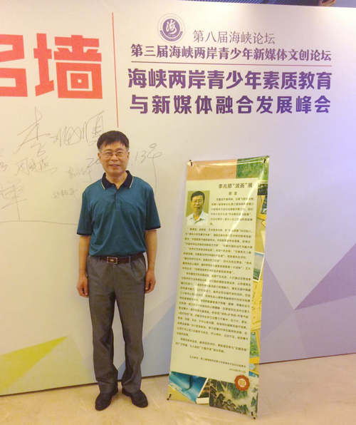 6月13日,第三屆海峽兩岸青少年新媒體文創論壇之海峽兩岸青少年素質教育與新媒體融合發展峰會在廈門集美區京閩北海灣酒店京都堂舉行。峰會特邀請教育家、發明家、藝術家李兆順先生為大家介紹由他開創的右腦潛能激發畫以及在兩岸青少年素質教育中所起的重要作用。近70位兩岸小學教師聆聽了這場精彩的講座。