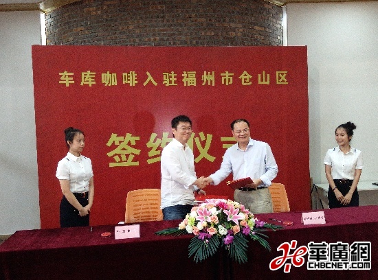 車庫咖啡合伙人石宇和福州市副市長胡振杰代表雙方簽約 民生 圖
