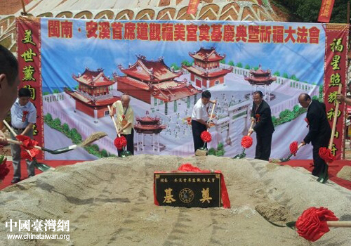 中國臺灣網(wǎng)6月19日福建安溪消息 6月18日上午,福建福美宮鞭炮隆隆,鑼鼓喧天。參加第四屆海峽論壇的臺灣嘉賓參加奠基儀式。來自臺灣的原民意代表、海華文教基金會董事李先仁,臺灣省李氏宗親總會第五屆理事長李章夫,臺南市議員李錦泉等臺灣嘉賓與當(dāng)?shù)仡I(lǐng)導(dǎo)、賢達(dá)一起出席了福美宮的奠基儀式,并共同為福美宮揭彩、培土奠基,李先仁先生做了熱情洋溢的講話。
