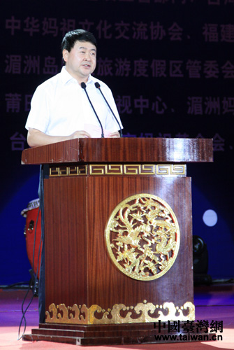 臺灣彰化縣副縣長林田富在開幕式致辭中表示,“我是第一次來湄洲島,心情非常激動。在臺灣每一位鄉親都有一個愿望就是能夠經常到莆田湄洲媽祖祖廟進香。莆田湄洲祖廟是一輩子一定要來一次的朝圣之旅。通過媽祖文化的交流會使海峽兩岸緊緊的擁抱在一起,希望透過媽祖文化的交流使海峽兩岸能得到更多的共識,為未來的發展奠定良好的基礎!