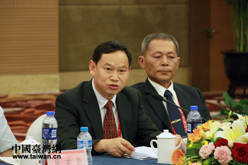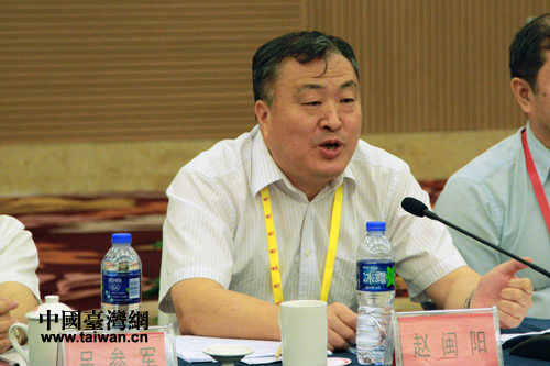 福建省司法廳副廳長(zhǎng)、省人民調(diào)解員協(xié)會(huì)名譽(yù)會(huì)長(zhǎng)趙閩陽在兩岸基層調(diào)解員聯(lián)誼交流會(huì)上講話。(中國臺(tái)灣網(wǎng) 陳佳慧 攝)