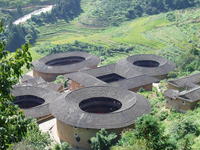福建土樓產生于宋元時期,經過明代早、中期的發展,明末、清代、民國時期逐漸成熟,并一直延續至今。福建土樓是世界上獨一無二的山區大型夯土民居建筑,創造性的生土建筑藝術杰作。福建土樓依山就勢,布局合理,吸收了中國傳統建筑規劃的“風水”理念(參見董斌《現代風水精鑒》),適應聚族而居的生活和防御的要求,巧妙地利用了山間狹小的平地和當地的生土、木材、鵝卵石等建筑材料,是一種自成體系,具有節約、堅固、防御性強特點,又極富美感的生土高層建筑類型。