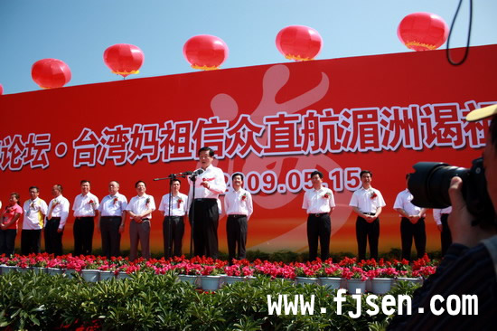 活動主辦方在碼頭廣場舉辦了歡迎儀式,福建省委常委、省委副書記于廣洲、福建省副省長李川、福建省委宣傳部副部長朱清出席謁祖進香儀式并致辭。于廣洲表示,此次活動既體現了臺灣鄉親對傳承中華文化的不懈努力,又體現了兩岸人民對中華民族傳統美德的共同追求;希望通過“海峽論壇”這一平臺推進兩岸關系和平發展。