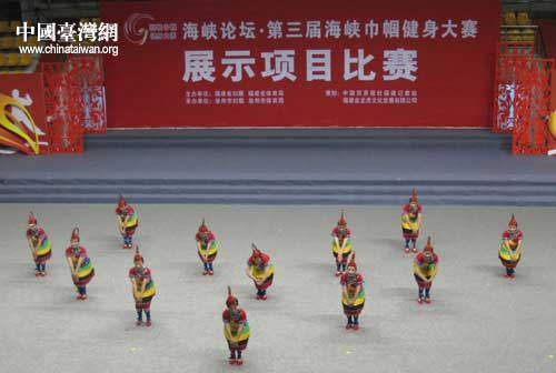 中國臺灣網5月19日泉州消息 海峽論壇·第三屆海峽巾幗健身比賽展示項目決賽今天晚上7點在泉州僑鄉體育館舉行,共有來自臺灣、香港、澳門,福建泉州、三明、廈門等7個設區市,以及福建省直機關、福建省個私協等12支隊伍參加。比賽中各個代表隊的精彩演出,讓觀眾們重新認識了女性的魅力與風采。