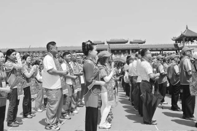 前來參加這次祭典的臺灣信眾共有12000多人,他們雖然來自不同宮廟,但衣帽上都印有“萬眾齊拜”、“大家歡喜迎媽祖”等字樣。