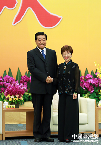 6月16日,中共中央政治局常委、全國政協(xié)主席賈慶林在廈門會見出席第四屆海峽論壇的兩岸各界人士。這是賈慶林與中國國民黨副主席洪秀柱握手。(中國臺灣網(wǎng) 王偉 攝) 中國臺灣網(wǎng)6月16日廈門消息 中共中央政治局常委、全國政協(xié)主席賈慶林16日下午在廈門會見了出席第四屆海峽論壇的兩岸各界人士。(中國臺灣網(wǎng)記者 王偉)