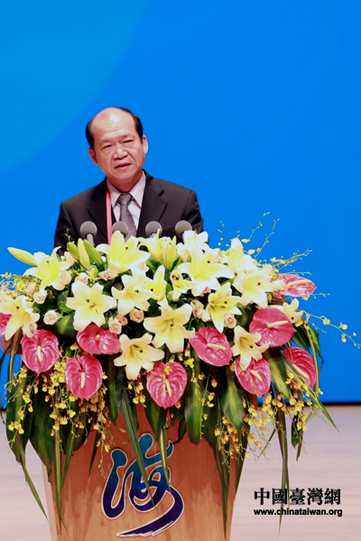 臺灣農田水利聯合會會長楊明風在第四屆海峽論壇大會上致辭。(中國臺灣網 王偉 攝)