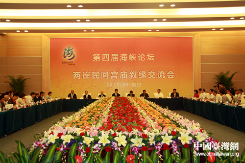 中國臺灣網6月17日廈門消息 百家宮廟,神緣締結民間;兄弟情義,血脈一貫綿長——“第四屆海峽論壇·兩岸民間宮廟敘緣交流會”今天下午在廈門舉行。