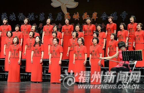 臺灣高雄鼓山婦女合唱團是支擁有22年歷史的老牌合唱團,除了指揮,60余位團員全是女性。指揮鄭光輝笑著問記者:“我這也可算是‘萬綠叢中一點紅’了吧?”展演結束后,當記者告訴該團團員,福州也有座名山叫鼓山時,團員們又驚又喜。團員謝德芬當即提議:“我們團和福州真的很有緣,我們找時間去福州的鼓山看看吧。”