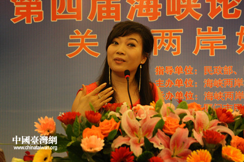 大陸新娘楊洋在論壇現場講述自己的跨海峽愛情故事。(中國臺灣網 栗琰 攝)