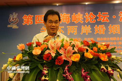 臺灣新住民協會執行長李正忠代表臺灣配偶發言。他說“1949年5月,我的父親離開大陸前往臺灣。50年之后,2009年,我的一對兒女先后進入廈門大學就讀。在老天爺的巧妙安排下,中國人的血脈從哪里出去又回到哪里。”