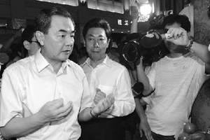 17日晚的廈門中山路雖剛剛下過雨,但依然人聲鼎沸。前來參加第四屆海峽論壇的中共中央臺辦、國務院臺辦主任王毅,出現(xiàn)在如織的人群中,同普通民眾一起“逛“正在這里舉辦的臺灣特色廟會。