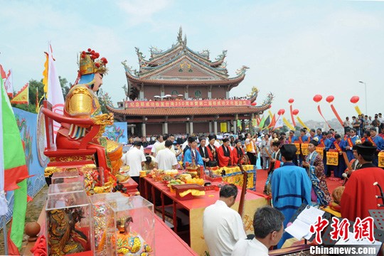 6月17日,來自海峽兩岸的數百名民眾齊聚“鄭成功故里”——福建南安石井鎮(zhèn),在兩岸攜手興建的“鄭成功廟”循古禮舉行了盛大的進香儀式,共同祭拜和緬懷鄭成功。中新社發(fā) 孫虹 攝
