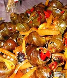螺片放下去一拉,倒出,濾去油。三、在鍋內另加少許豬油燒熱,將蔥段,冬筍片、冬菇片一起放入略炒,再加鹽、酒、菱粉、清湯勾好芡,隨即將拉過的響螺片倒入,一起迅速炒幾下即好。