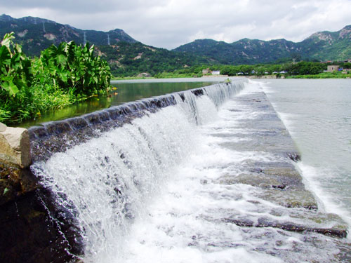 “秋水古陂”位于莆田涵江區江口鎮石獅院里,在萩蘆溪下游地段。創建于宋太平興國二年(977),俗稱南安陂,千年來堅固如初。其立體攔河壩為滾水壩型,當碧水溢過滾水壩,潔白的浪花飛濺,形成一幕百余米的水簾,美不勝收。 (李克成/圖)