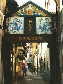 文儒坊 原始狀態(tài)下的文儒坊是一條穿過小山包的林蔭道。這些小山后來都被高大的風火墻圍進了深宅大院,所以最初的名字叫山蔭巷。當小山看不見,林蔭又消失的時候,坊內(nèi)住下的人物個個以"鴻儒"自居,于是改名為"儒林巷",進一步將"白丁"們拒之巷外。宋時,國家最高學府的"校長"--國子監(jiān)祭酒鄭穆在此安居,里人學風日盛,巷人引為自豪大筆一揮改成了"文儒坊"。明清兩代文武官員聚居于此,有明代的抗倭名將張經(jīng),清代臺灣總兵甘國寶,清代五代世進士陳承裘,近代詩人張衍等。