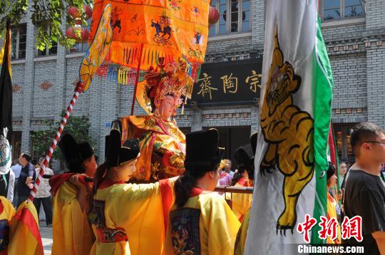 14日恰逢中國“文化遺產日”。由福建省非遺中心發起,福州三坊七巷天后宮與臺灣著名的松山慈惠堂以及臺灣多個天后宮、澳門臨水宮等兩岸三地數十個宮廟聯合在福州三坊七巷開展媽祖巡香展演活動。