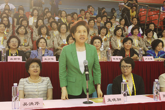 全國婦聯(lián)黨組副書記、副主席、書記處書記孟曉駟宣布“兩岸家庭廣場(chǎng)舞展示”開始
