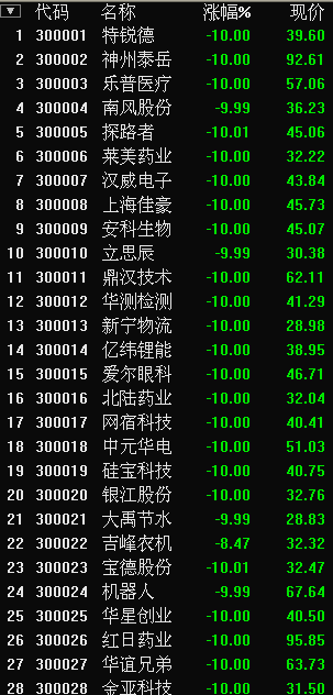 創(chuàng)業(yè)板28只個股開盤27只跌停