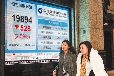 中新網2月20日電 據香港《文匯報》報道,美國突然調高貼現利率,市場擔心美國會提早退市及加息,港股急跌528點,失守20000點,跌幅達2.6%,是19日亞太區股市中表現最差的市場。香港地產股、內銀股及資源股成為跌市重災區,成交淡靜只有430.7億元。