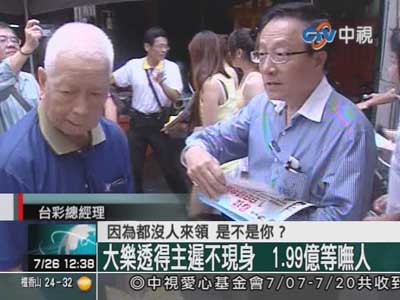 大樂透得主遲遲不領(lǐng)獎,臺彩總經(jīng)理黃志宜還親自到高雄發(fā)傳單找人。圖片來源:臺灣“今日新聞網(wǎng)”