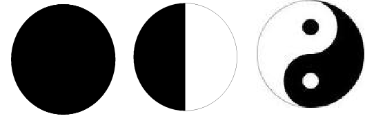 更長期看,筆者曾經(jīng)將研究兩岸統(tǒng)一的主要思路歸納為以下三種模式(下圖):第一種是完全同色的圓圈,第二種是黑白各半的圓圈,第三種是太極圖。
