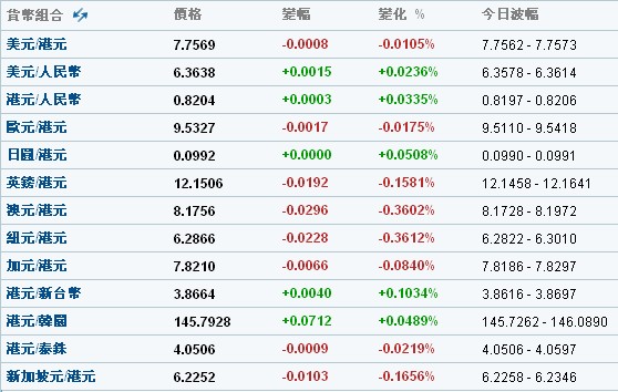 主要貨幣匯率
