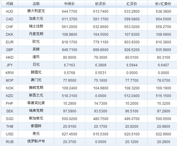 22日人民幣匯率中間價:1美元對人民幣6.2...