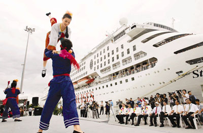 郵輪3日抵達臺南安平商港后,旅客的岸上觀光行程隨即展開,約有300至400人選擇參與觀光團,分4條不同路線上岸游覽。在臺南著名古跡赤坎樓售賣小吃的攤檔負責人稱,乘坐郵輪的大陸旅客比一般大陸旅客消費力強,3日生意額明顯上升,料可帶動當地旅游收益。