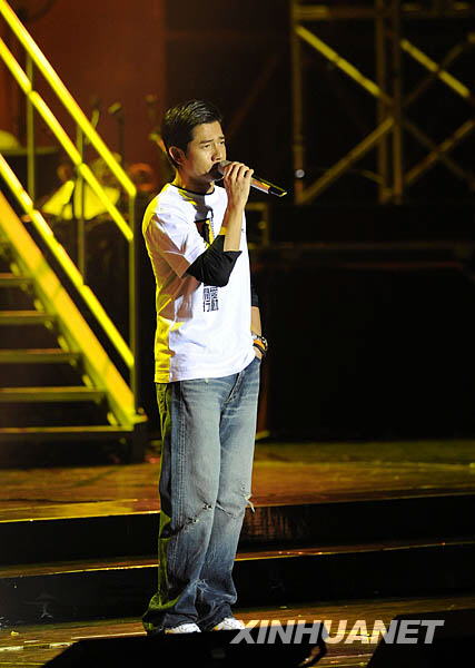 8月17日,在香港舉行的賑災義演中,香港藝人郭富城演唱《愛的呼喚》。新華社記者陳鐸攝