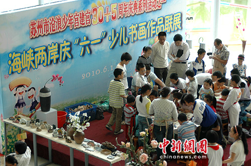 作為蘇州滄浪少年宮35周年慶典的一部分,海峽兩岸“六一”書畫作品聯展用120幅作品搭建起了一個兩岸少年兒童溝通的橋梁。