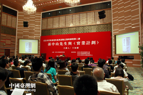 中國臺灣網5月23日北京消息 身著黑色中山裝,講著一口標準的美式英文,5月21日晚,孫中山先生曾外孫、孫中山和平教育基金會副主席、夏威夷華人聯義中會理事王祖耀先生在辛亥革命百周年之際走進北京大學英杰交流中心,舉行了題為“孫中山先生與《實業計劃》”的演講。