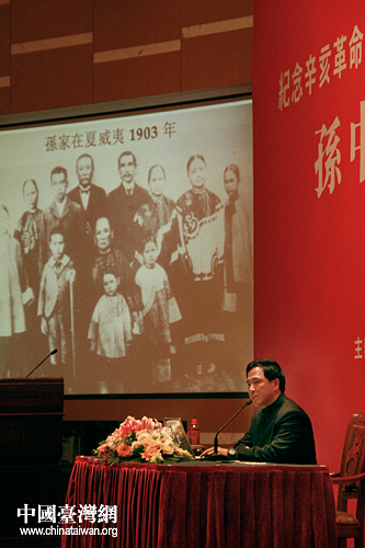 演講過程中,王祖耀先生向大家展示了孫家珍貴的資料圖片。(中國臺灣網 普燕攝)