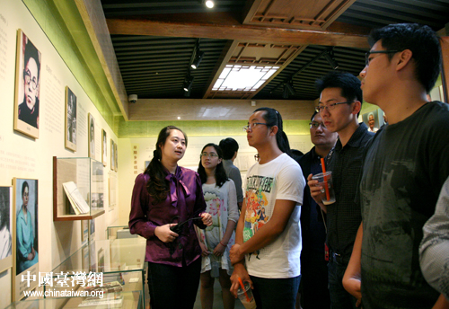 16日下午,來自清華大學、北京大學、中國人民大學、中央民族大學等六所高校的150多名臺灣學生參觀了位于前門附近的臺灣會館。圖為會館工作人員向大家講解在京名人事跡。(中國臺灣網 普燕攝)