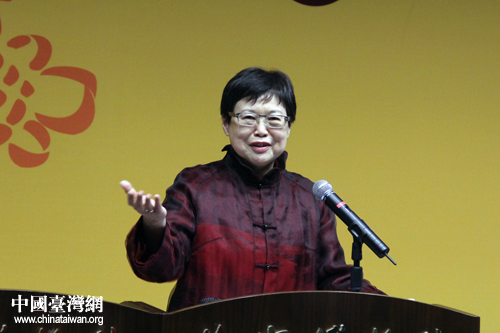 兩岸故宮博物院院長22日在北京故宮探討合作,在隨后舉行的2013年兩岸故宮交流記者會上,臺北故宮博物院院長馮明珠介紹兩館未來合作規劃。(中國臺灣網 楊麗 攝)