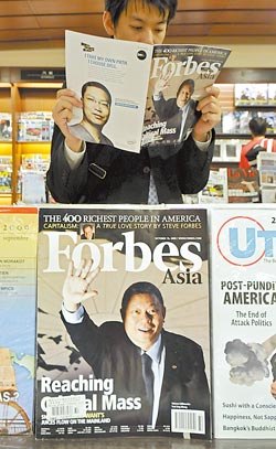 《福布斯》雜志評(píng)選亞洲50大企業(yè),旺旺集團(tuán)首次入選,內(nèi)容專訪董事長蔡衍明并選用照片為封面。(圖片來源:臺(tái)灣《中國時(shí)報(bào)》)